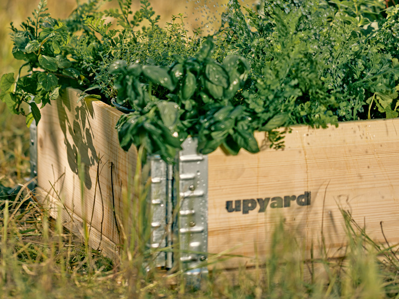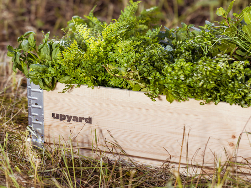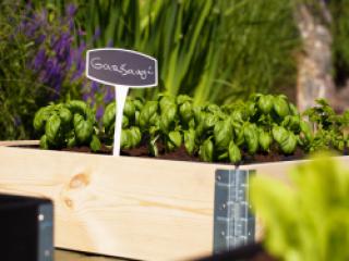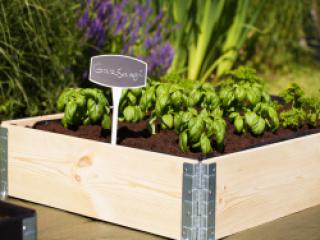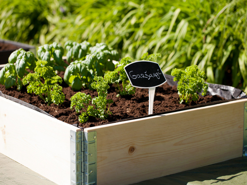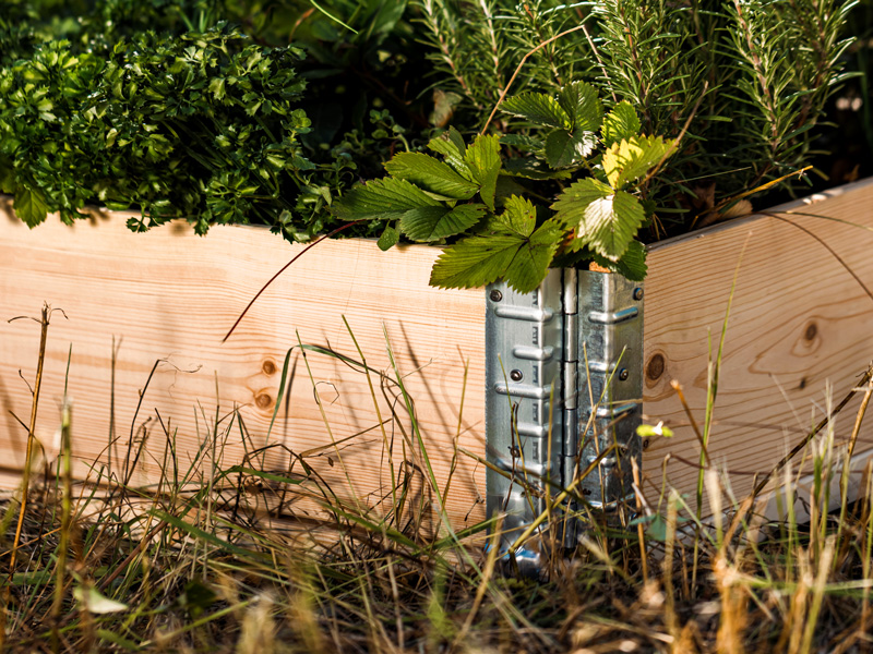 Pakelta medinė sodo lysvė, pagaminta iš tvaraus šiaurinių spygliuočių medienos ir cinkuoto plieno.