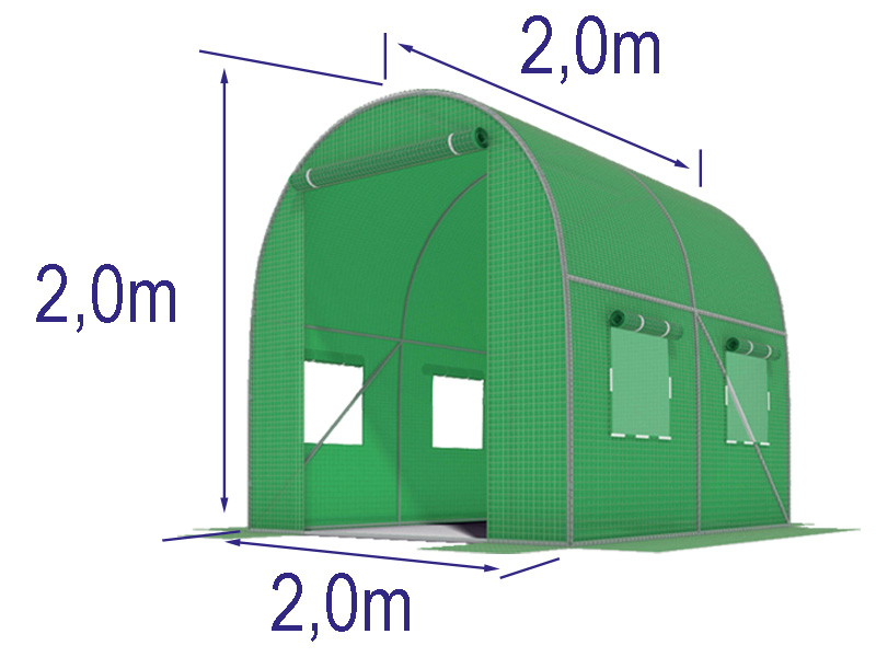 Dydis: 2,0 x 2,0 x 2,0 m — kompaktiškas ir praktiškas šiltnamis daržovių auginimui.
