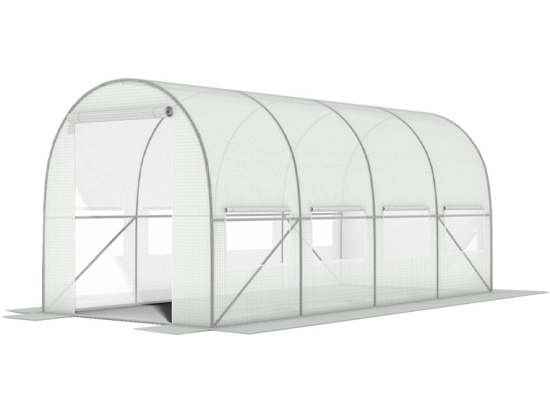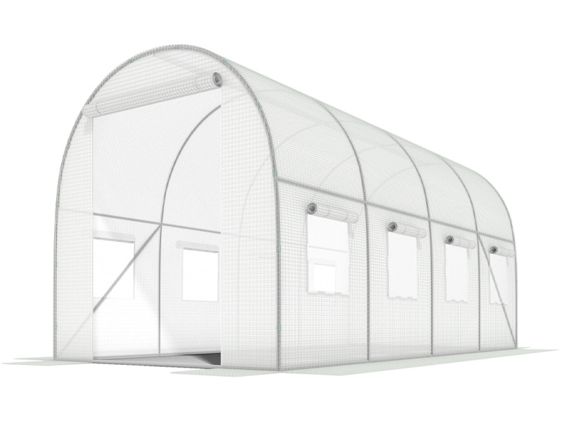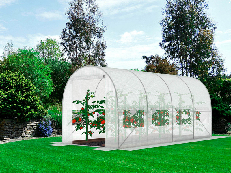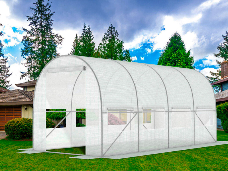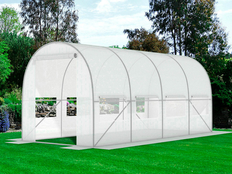 PLĖVELINIS TUNELINIS ŠILTNAMIS BALTA SU LANGINIAIS 9 M² (450x200x200 cm)