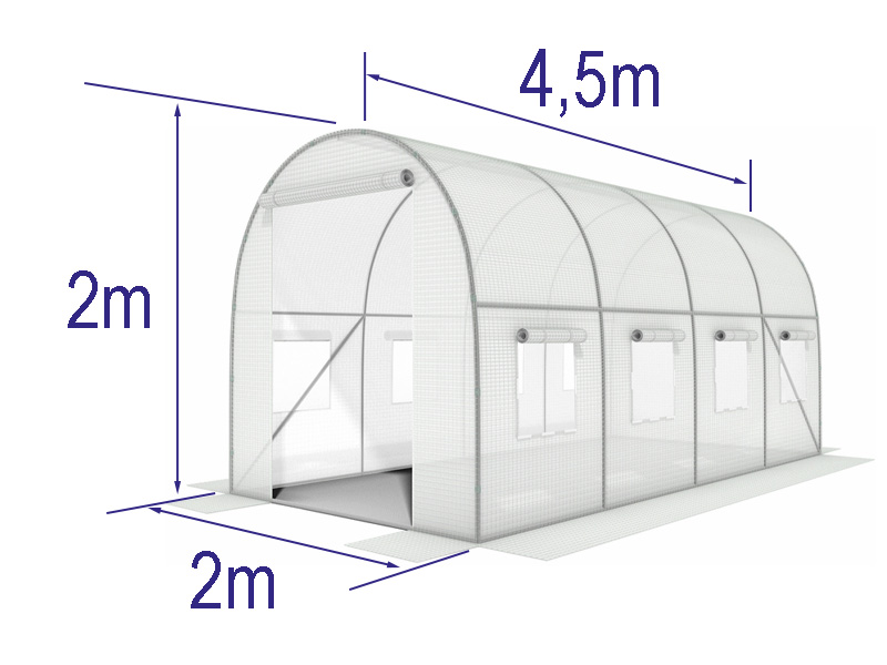 Plėvelinis tunelinis šiltnamis balta su langiniais 9 m² (450x200x200 cm)