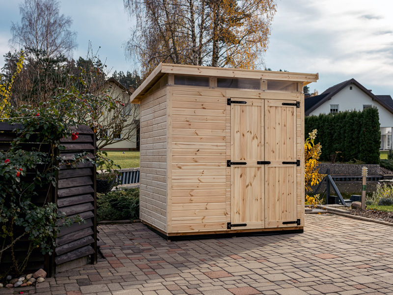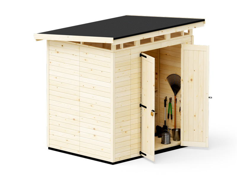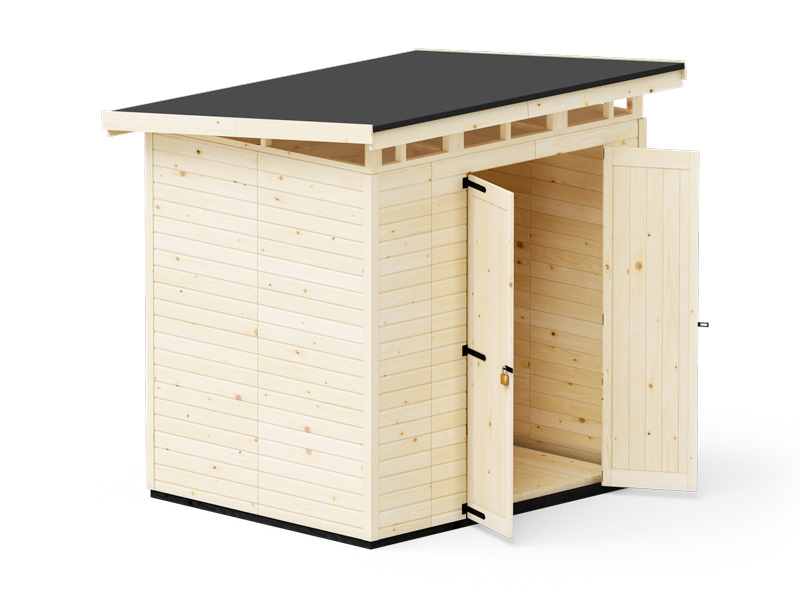 Techninė informacija:Medžiaga: Šiaurės eglėSpalva: natūrali medienaPlotas: 3,3 m²Vidinis plotas: 2,95 m²Sienelės storis: 15 mmGrindų storis: 15 mmStogas: 15 mm lentosStogo dangos komplektas: įtrauktas (Ondulinas arba PVC)