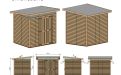 Techninė informacija:Medžiaga: Šiaurės eglėSpalva: ruda/impregn. 44.400044Plotas: 3,3 m²Vidinis plotas: 2,95 m²Sienelės storis: 15 mmGrindų storis: 15 mmStogas: 15 mm lentosStogo dangos komplektas: įtrauktas (Ondulinas arba PVC)