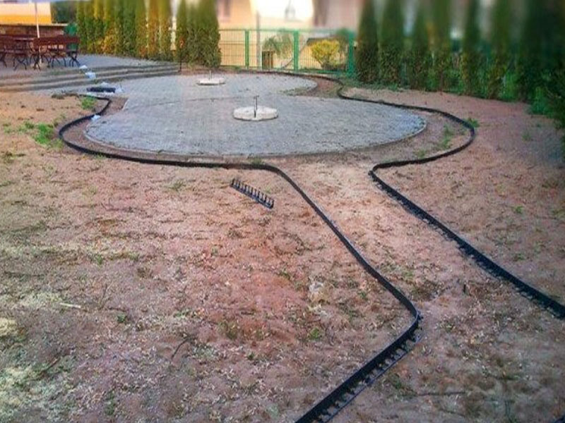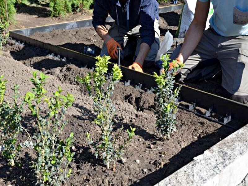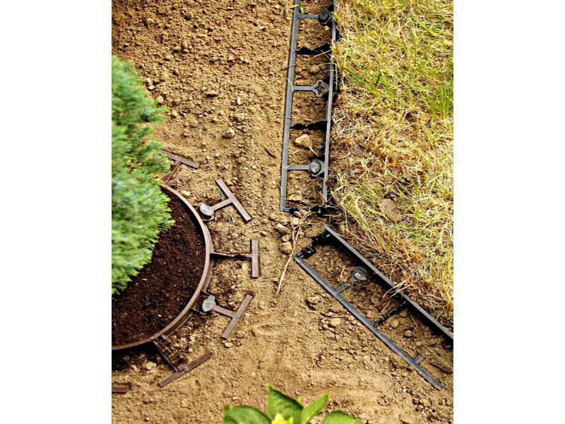 Vejos kraštinės tvirtinamos specialiais plastikiniais inžiriais - smeigėmis. Suformuokite norimą vejos kraštinės formą ir tada pritvirtinkite ją inžiriu - smeige.