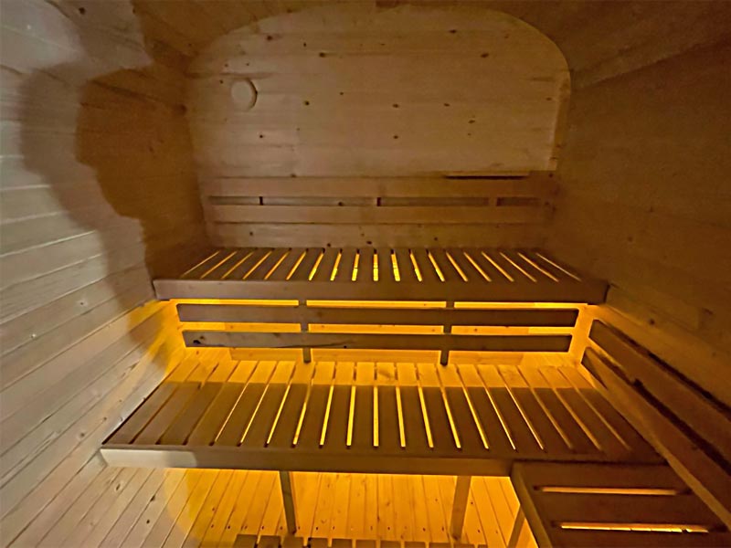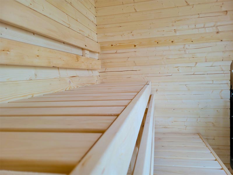 Unikali konstrukcija leidžia būti pirties patalpoje pilname ūgyje net prie sienų. Vidinis patalpų išdėstymas yra ergonomiškas, suolai išdėstyti dviejuose lygiuose L formos, užtikrinant komfortą ir vienodą šilumos paskirstymą. Erdvus prieškambaris daro pirties naudojimą dar patogesniu, o modulinė sistema leidžia įrengti krosnį bet kurioje pusėje.