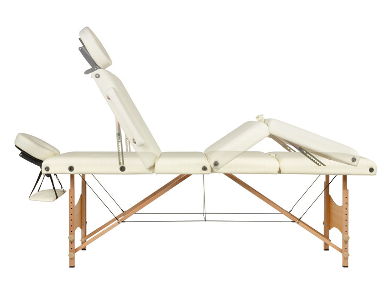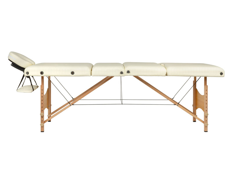 ***SALOKĀMS 4-SEGMENTU KOKA PĀRNĒSĀJAMS MASĀŽAS GALDS (KRĀSA: KRĒMA)