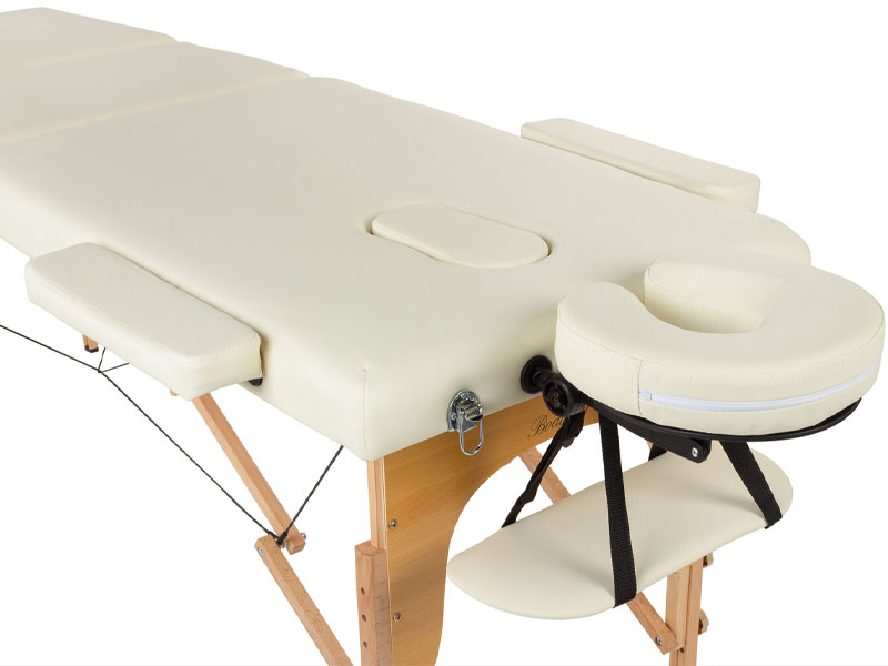 Šis trijų sekcijų medinis stalas užtikrina maksimalų komfortą dėl minkšto užpildo ir patvarios ekologiškos odos dangos. Pakeliama sekcija su 10 padėties reguliavimu leidžia dirbti tiek gulinčioje, tiek sėdimoje padėtyje. Aukštis reguliuojamas nuo 61 iki 84 cm.