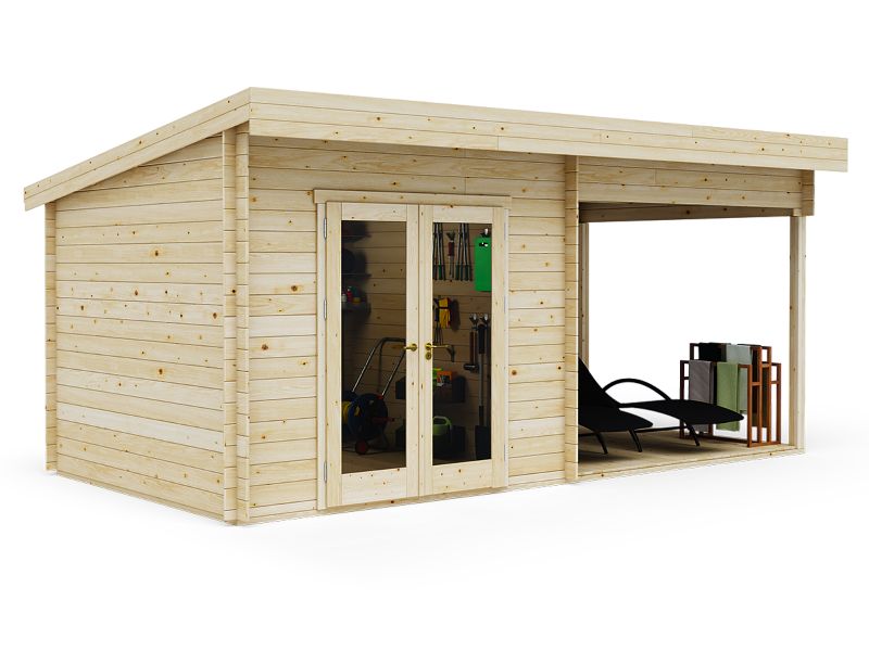 Standartinėje komplektacijoje šis medinis namelis pristatomas be stogo dangos.
