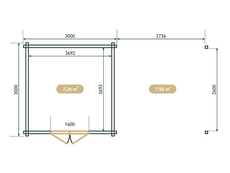 Sienelės vidinis dydis: 2,74 m x 2,74 m
