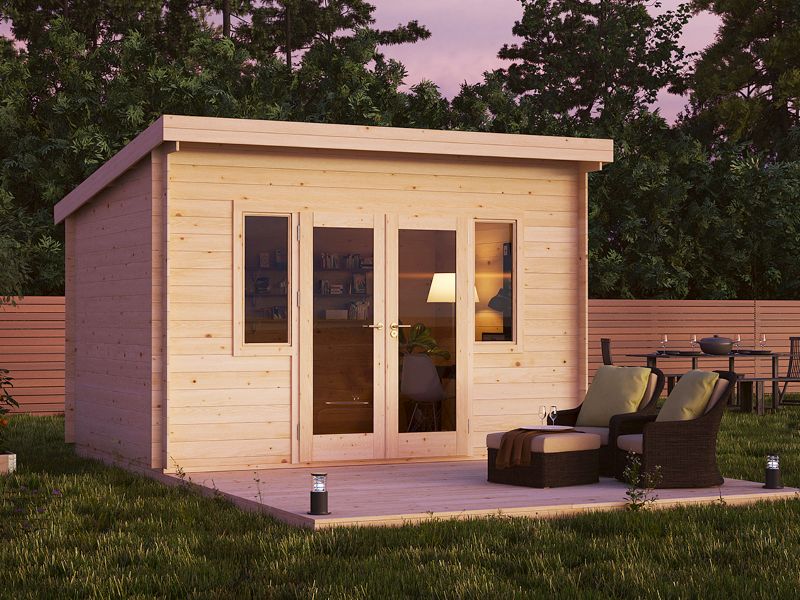 Standartinėje komplektacijoje šis medinis namelis pristatomas be stogo dangos.