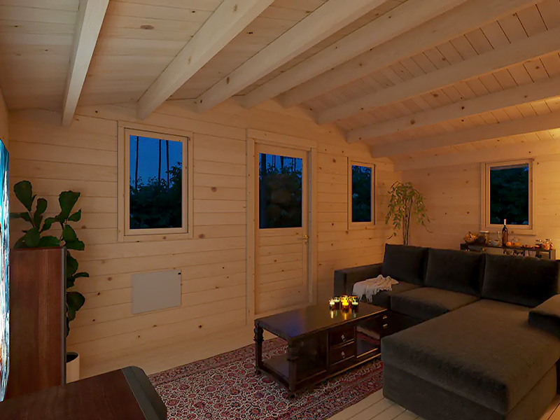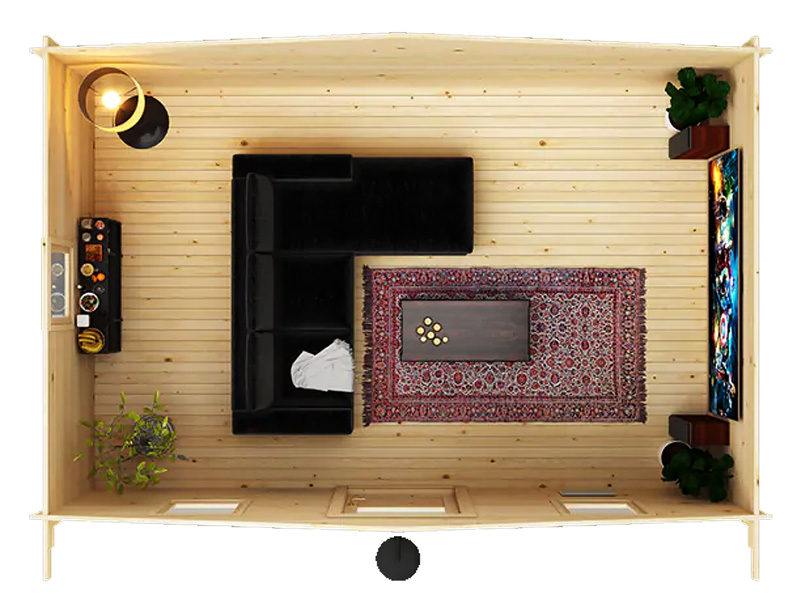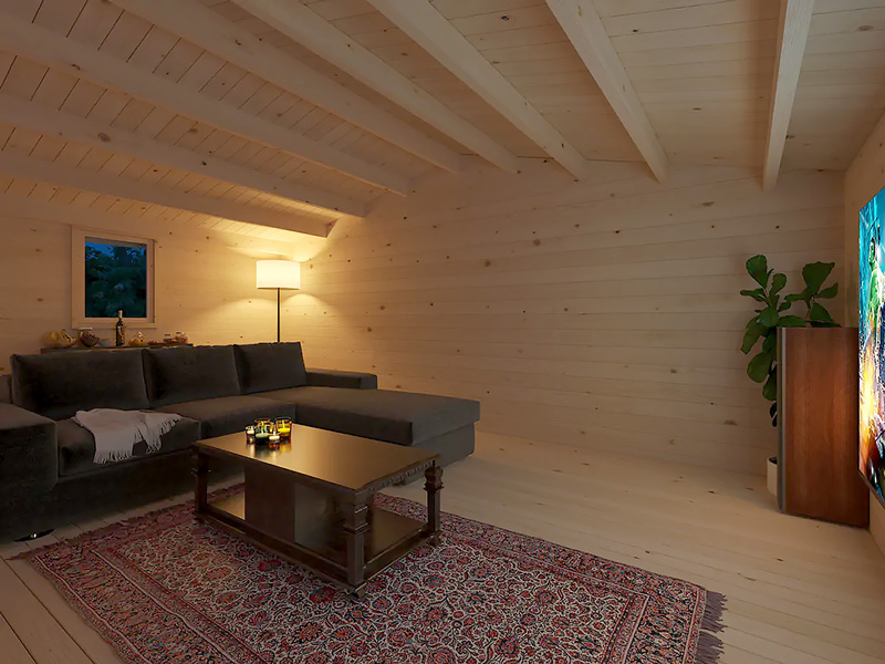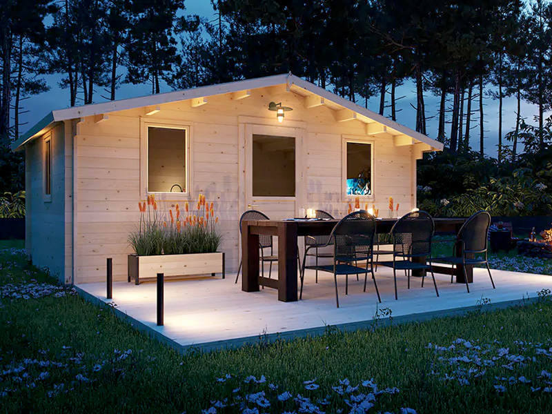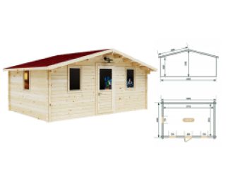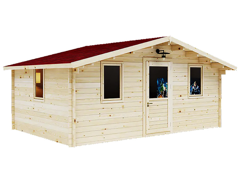 Standartinėje komplektacijoje ši medinė trobelė pristatoma be stogo dangos.