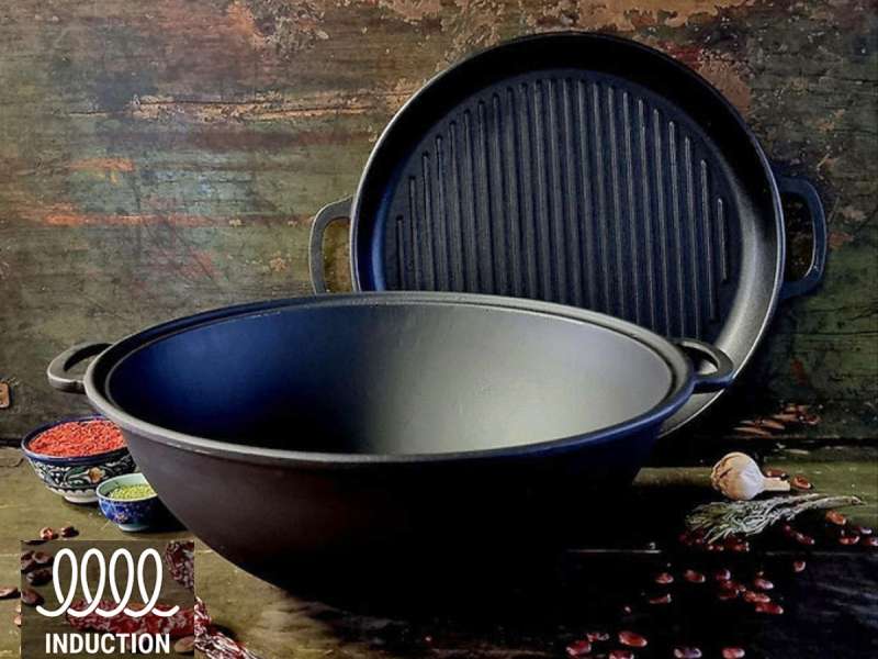 Klasikinis WOK tipo katilas iš aukštos kokybės ketaaus — ideali pasirinktis gurmanams ir tradicinės virtuvės gerbėjams. Suapvalinta forma be kampų užtikrina tolygų šilumos pasiskirstymą patiekalams ruošti — plovui, troškiniams, sriuboms ir net konditerijos gaminiams. Storas pagrindas puikiai kaupia šilumą, o sustiprinti kraštai sandariai laiko dangtį, neleidžiant kondensatui išsisklaidyti.