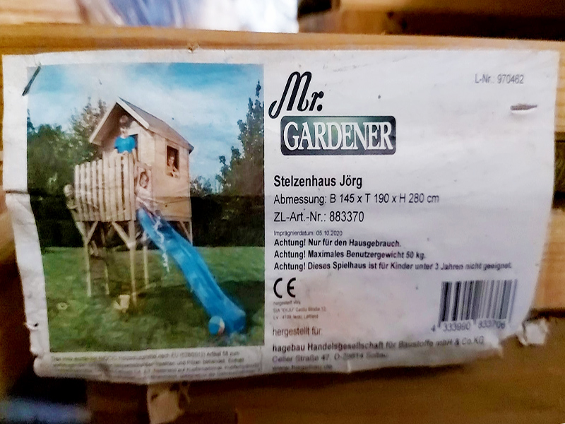 - Žaidimų namelis su 4 kojomis, apie 7 x 7 cm storesnis.