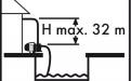 Darbo našumas (maks.): 3000 l/hPakėlimo aukštis H (maks.): 32 mPakėlimo gylis T (maks.): 7 mSistemos slėgis (maks.): 3,2 barVandens temperatūra iki 35°C