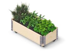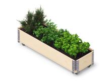 MEDINIS PAAUKŠTINTAS LYSVĖ ŽOLELIAMS IR DARŽOVĖMS HERBS BOX SU RATAIS 1200X400X195MM, NATŪRALI (BALKONAMS, TERASOMS IR KIT.)