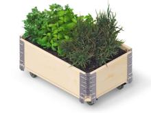 MEDINIS PAAUKŠTINTAS LYSVĖ ŽOLELIAMS IR DARŽOVĖMS HERBS BOX SU RATAIS 600X400X195MM, NATŪRALI (BALKONAMS, TERASOMS IR KIT.)