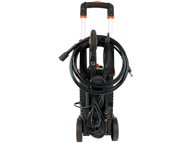 Augsta mobilitāte: pateicoties lielajiem riteņiem un praktiskajam salokāmajam un izvelkamajam transportēšanas rokturim, spiediena mazgājamo mašīnu var viegli un ērti pārnēsāt un izmantot gan vertikāli, gan horizontāli.