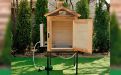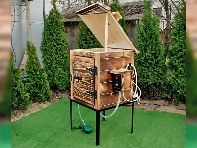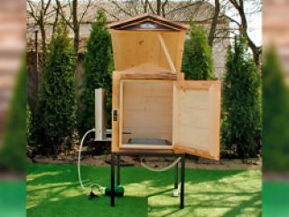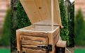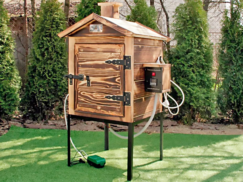 KŪPINĀTAVA ar jumtu un dūmvadu, izmēri 50 x 50 x 85 cm, izgatavota no 20 mm bieza Ziemeļvalstu egles koka.