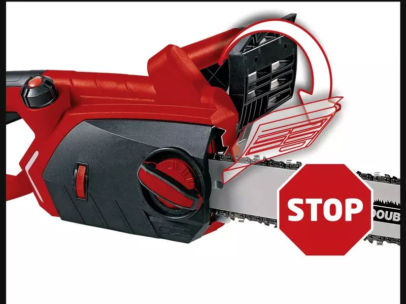 Drošība pirmajā vietā: aizsardzība pret atsitienu ar mehānisku tūlītējas ķēdes bremzi sniedz papildus drošību darba laikā.