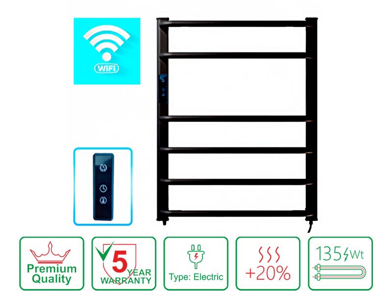 Elektriskais dvieļu žāvētājs Modelis 'TESLA' B-EU6/55 Sensor Wi-Fi (Krāsa: Melna)