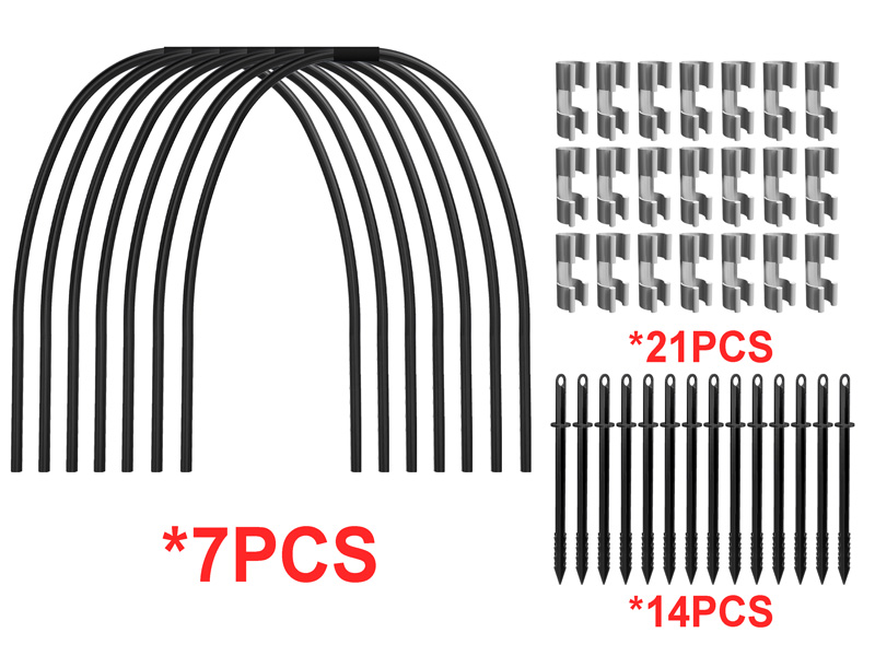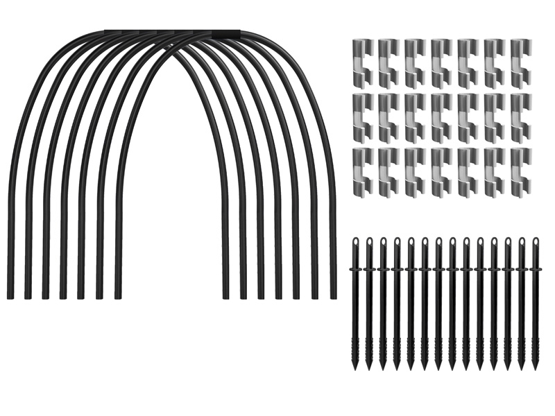 — ideāls risinājums stipra pārklājuma izveidei augiem. Komplektā ietilpst 7 izturīgas plastmasas (PND) caurules, kuru garums ir 2 metri, stiprinājuma klipši materiāla fiksēšanai un universālie stieņi. Viegli uzstādāmi, regulējami pēc augstuma un platuma. Lieliska izvēle jūsu dārzam!