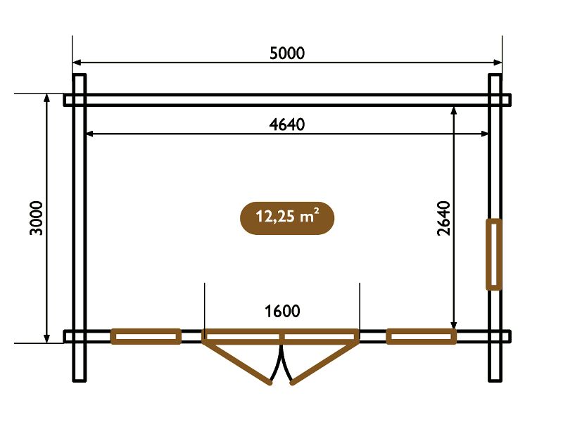 Sienas iekšējais izmērs: 4,7 m x 2,7 m