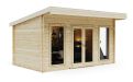 Standarta aprīkojumā šī koka mājiņa tiek piegādāta bez jumta seguma.